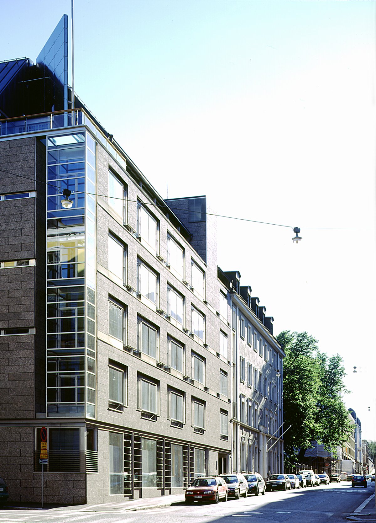 In the 1990s there was an empty site surrounded by listed signature buildings near the Cathedral in the heart of Helsinki, in the corner of two streets (Meritullinkatu and Kirkkokatu). It had served as a temporary parking area since 1971, when a building designed By C. J. von Heideken in 1893, used by the University of Helsinki, was demolished. The Finnish Real Estate Institute decided to build there an office building for the Ministry of Social Affairs and Health. In 1996, the institute organised an invited architectural competition, and the building was designed and constructed on the basis of the winning entry. Before the completion of the new building the ministry had operated in thirteen different addresses. About three hundred officials moved to the building.