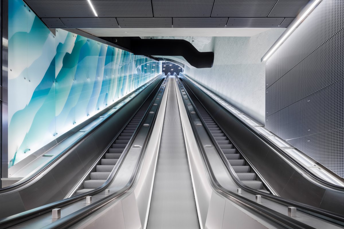 Traffic on the Ruoholahti–Matinkylä line started in November 2017. The stations on the line are functionally similar. On the platform level they are parallel to the track, 90 metres long, and at each end there are escalators and lifts for passengers to ascend to ground level. However, the objective was to achieve idiosyncratic stations that are distinctive from each other. That is why each station was given a specific, characteristic theme at the beginning of the design phase.