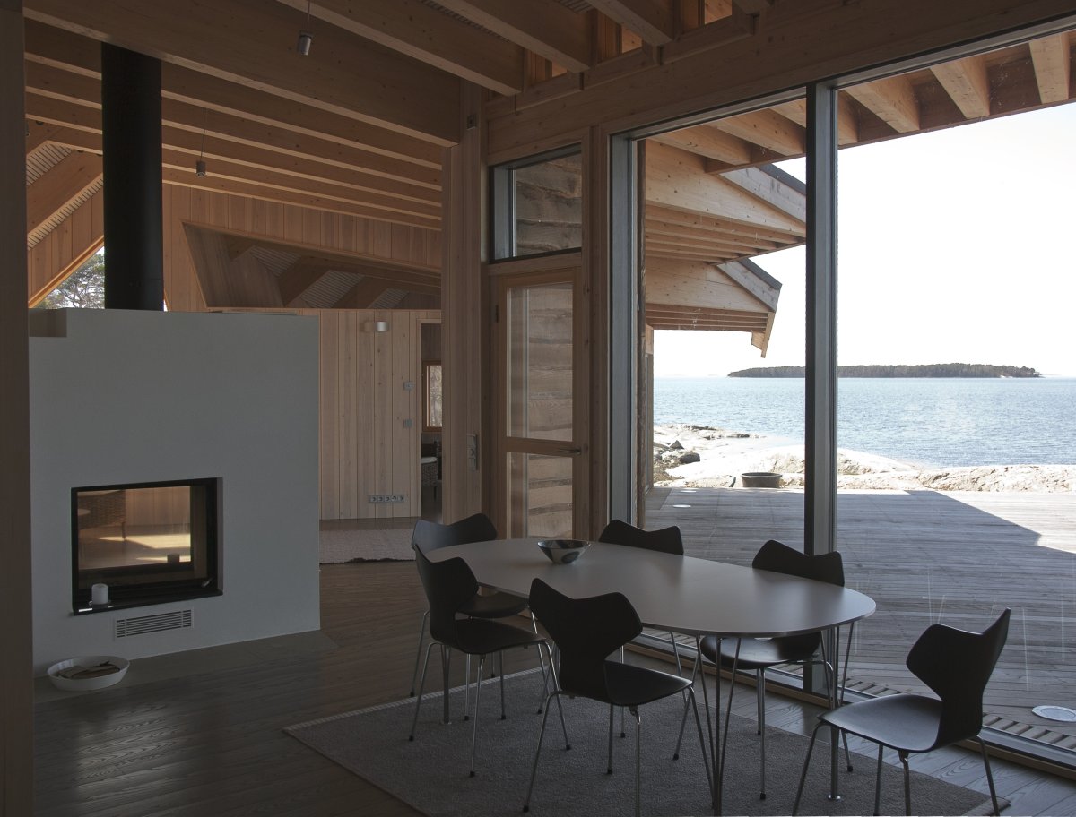 A small remote island in the Gullkrona archipelago offers a panorama of changing seasons in the northern Baltic: late sunsets fill open skies and early sunrises dramatise rocky islands. In spring, constant birdsong greets the end of severe winter. Warm calm midsummer days are filled with scents of pine and juniper. Autumn storms drive huge waves over the rocks to freeze gradually, generating abstract formations of drifting ice. Finally, all is covered by snow. The villa is built to experience all this and counteract periods of urban hard work.