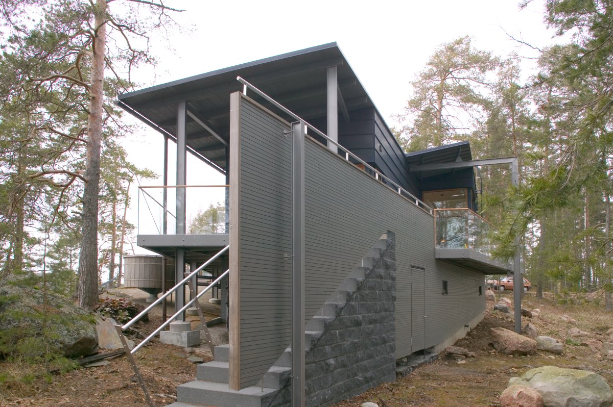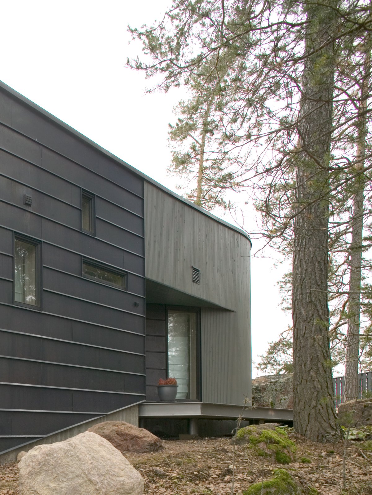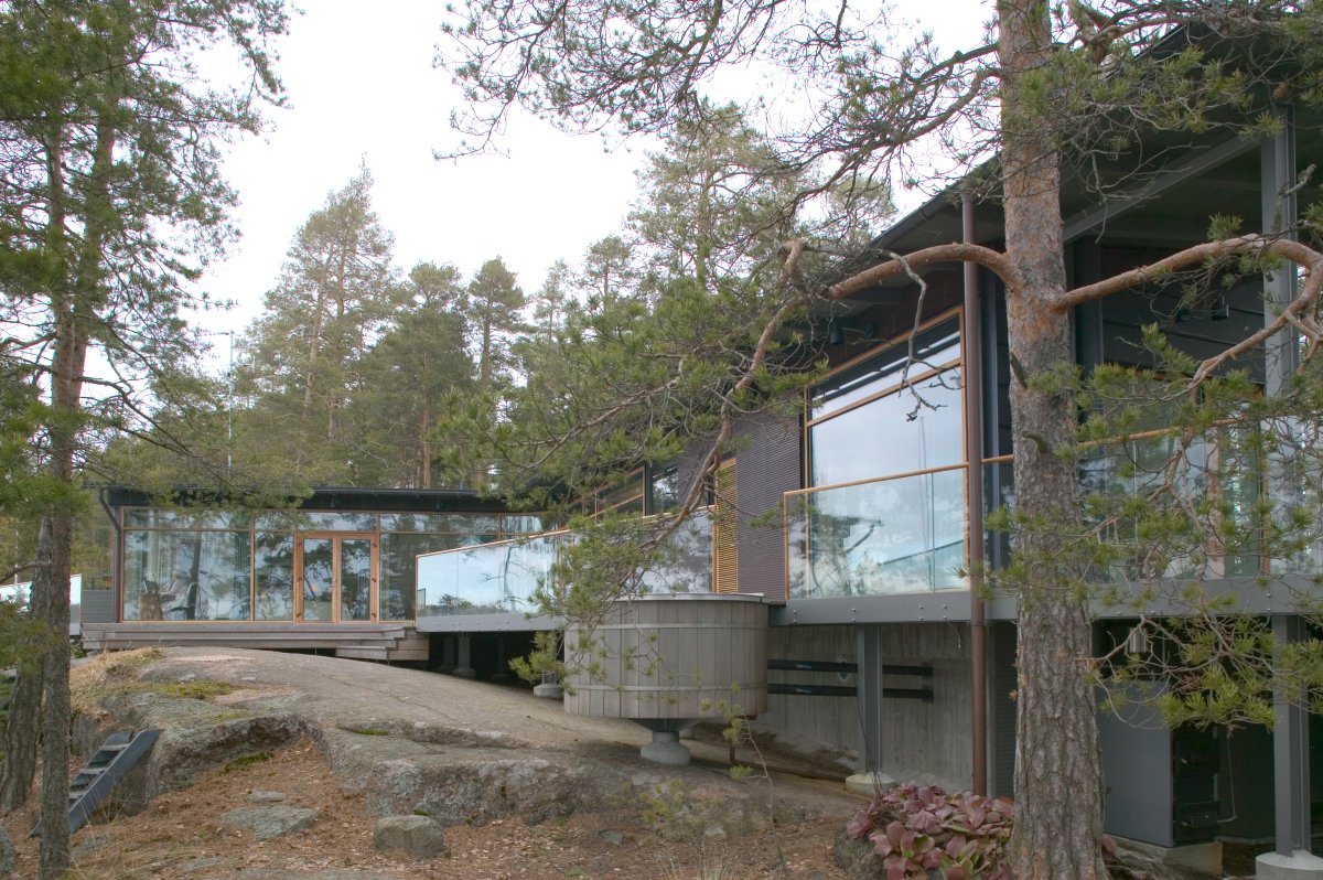 The site is in the immediate neighbourhood of the village of Iitti. It is a rocky tip of headland, where the family had spent their holidays during three generations. They decided to replace the existing summer cottage, built in the 1960s, with a new villa, which would serve as a place of relaxation and a generator of renewal and where they could meet relatives and friends. They also wanted to offer their foreign artist guests a unique experience amidst nature.